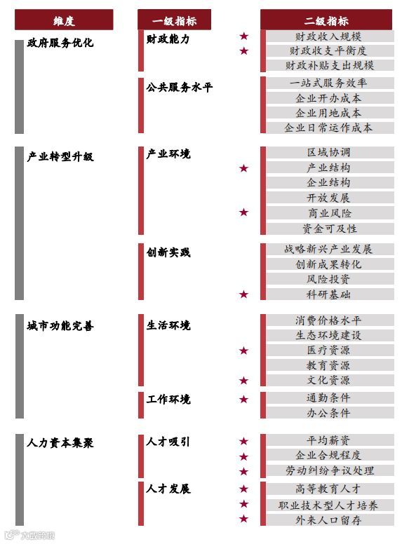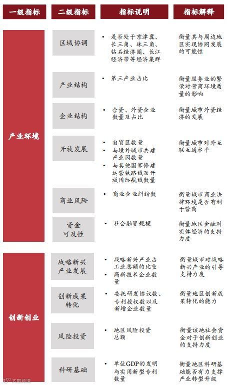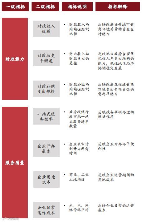 “营商环境质量指数”分为城市对企业的吸引力 ( “城市吸引力”)和企业在城市的发展力( “企业发展力”)两个以结果为导向的评分。