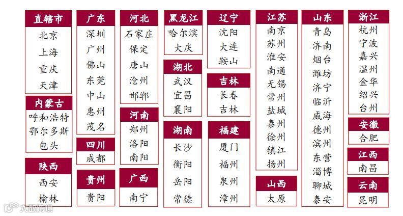 在指数的区域变化上,2017年至2018年指数排名提升最快的城市集中在东部地区。西部地区除贵阳外,其余城市指数排名表现平稳;中部地区宜昌市指数攀升较快,衡阳市、长沙市等指数小幅提高。