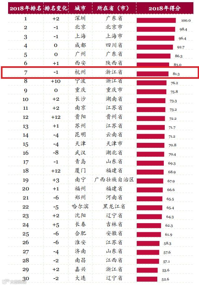 其中,排名前三的城市(深圳、北京、上海)在这六方面显著领先于其他城市;