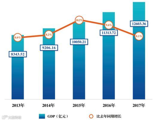 长期以来杭州不断夯实创新发展的基础,坚持把发展高新技术产业作为城市发展战略的正确方向。2017年,杭州实现地区生产总值(GDP)12603.36亿元(人民币,下同),增长8.1%,位列全国主要城市第十。其中,数字经济起到主引擎作用,实现增加值3216亿元,增长21.8%,对经济增长贡献率超过50%,占GDP比重为25.6%。