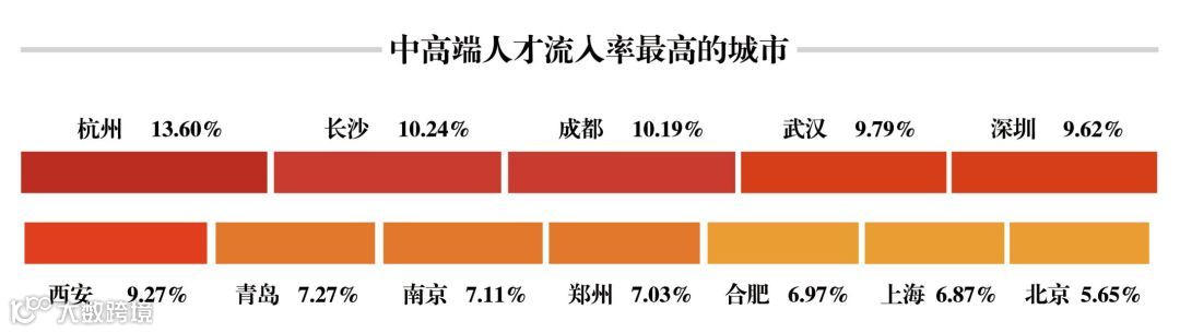 △ 《2018年上海中高端人才及沪漂大数据报告》中全国人才净流入率城市排行榜