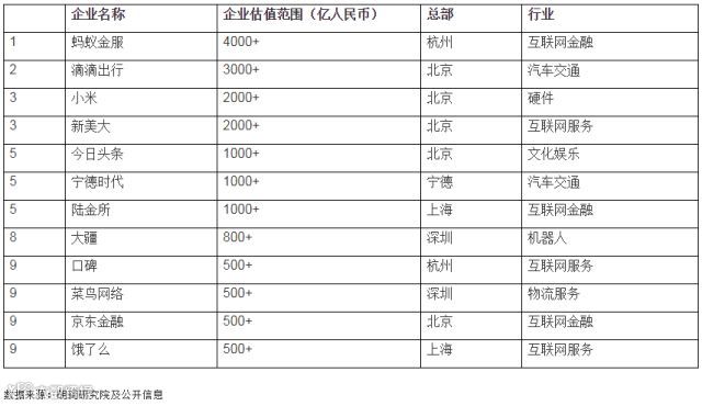 榜单结合资本市场独角兽定义筛选出有外部融资且估值超十亿美金(70亿人民币)的优秀企业,数据截止日期为2017年11月30日。