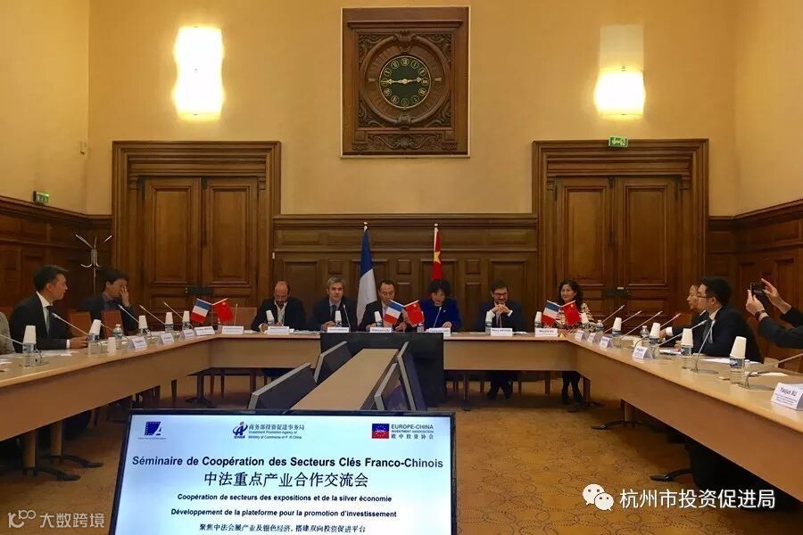 当地时间9月27日,中法重点产业合作交流会在巴黎召开。国家商务部投资促进事务局局长刘殿勋带团与法国商务投资署、巴黎大区投资促进署、法国国家养老产业协会、巴黎市工商会、德勤等相关机构,就中法双方深化未来工业、银色经济及会展经济等重点产业合作,搭建双向投资促进平台进行了沟通交流。杭州市投资促进局副局长徐文霞随团参加了交流会。巴黎大区投资促进署总干事 Alexandre MISSOFFE主持会议。