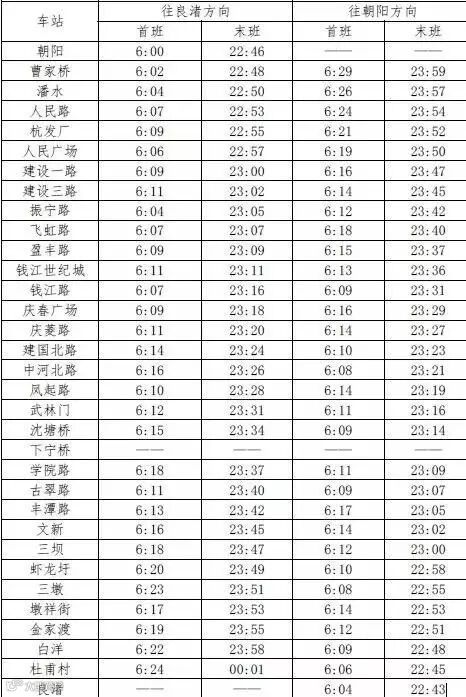 二号线时刻表
