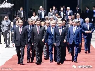 5月15日,圆桌峰会第一阶段会议结束后,习近平同与会领导人和国际组织负责人步出雁栖湖国际会议中心。