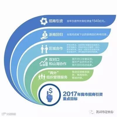 不过,杭州并没有满足于这一成绩。2017年开年伊始,市经合办就早早地制定好了今年招商引资工作的目标和任务。今年。杭州全年引进国内招商引资到位资金的目标是——1540亿元。
