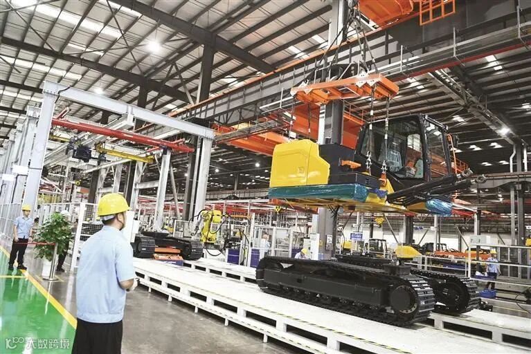 柳工挖掘机智慧工厂装配生产线。全媒体记者 黄蕊 摄