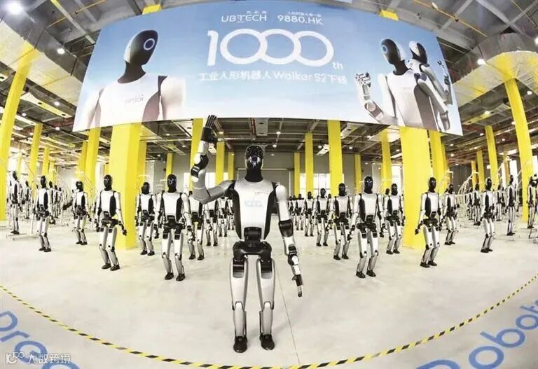 这是12月26日,柳州优必选第1000台工业人形机器人Walker S2下线的场景。