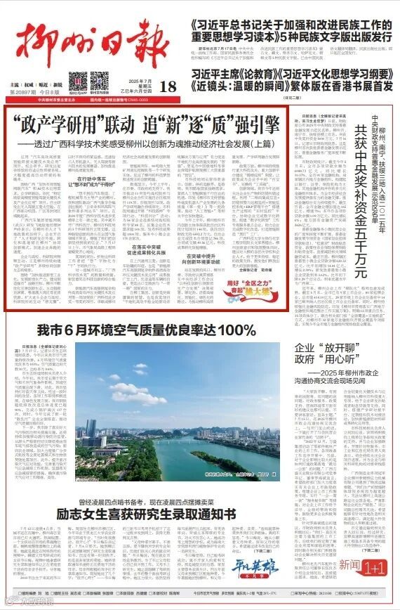 7月18日,《柳州日报》头版页面截图。