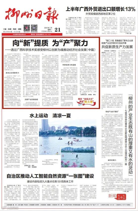 7月21日,《柳州日报》头版页面截图。