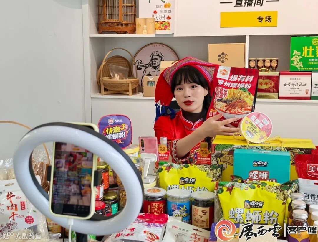 “这款螺蛳粉配料丰富,口味鲜香辣爽。”10月21日上午,在龙工场跨境电商产业园的直播产业孵化基地,一位身着民族服饰的主播正向网友推介预包装螺蛳粉。她身前及背景板上陈列着各式柳江特色产品。