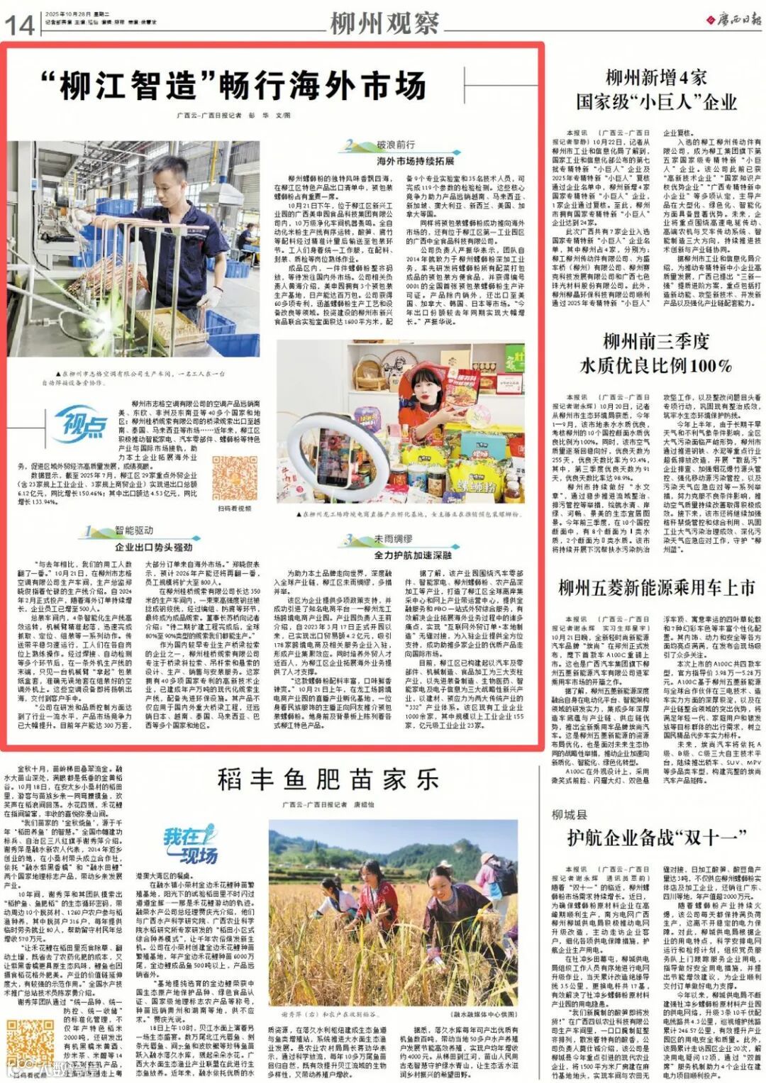 10月28日,《广西日报》14版“柳州观察”栏目,发布文章《“柳江智造”畅行海外市场》。