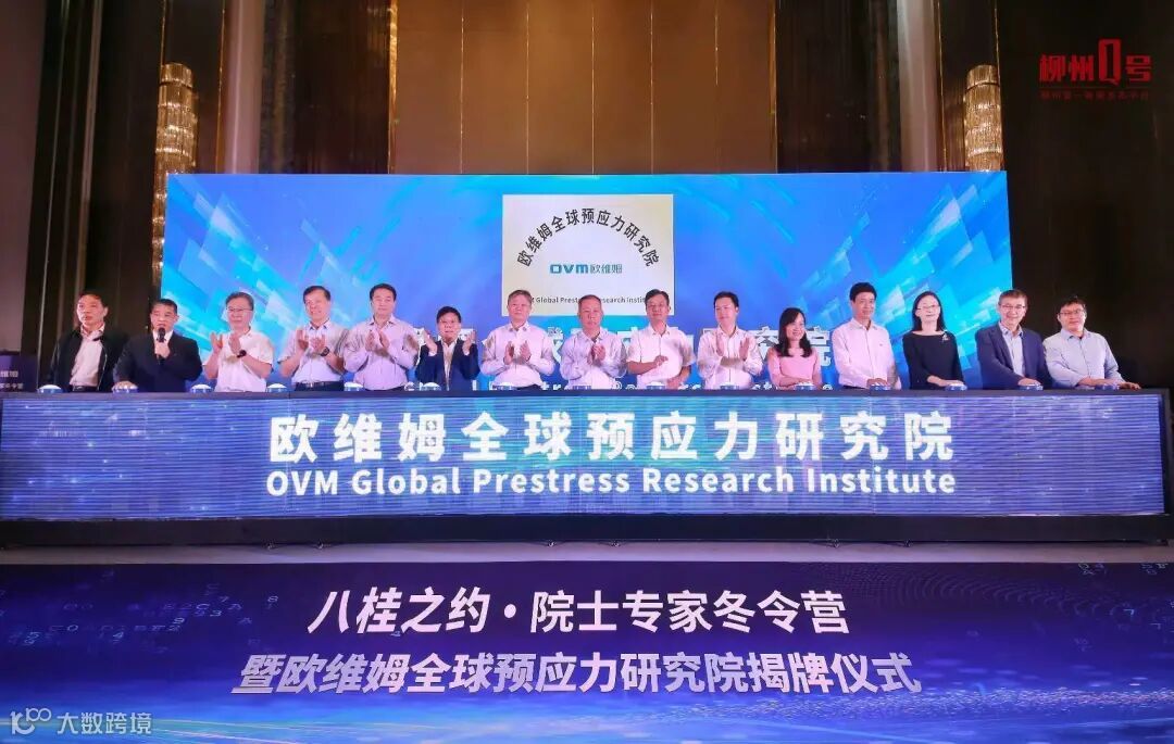 10月15日,“八桂之约·院士专家冬令营”暨欧维姆全球预应力研究院揭牌仪式在我市举行。中国工程院院士岳清瑞、曾滨应邀为欧维姆全球预应力研究院揭牌。这预示着柳州欧维姆机械股份有限公司将依托新设立的欧维姆全球预应力研究院,打造全球市场和技术应用平台,把中国技术推向世界,积极参与国际标准制定。