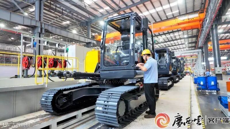 在柳工生产车间,工人正在装配工程机械。记者 潘锦才 摄