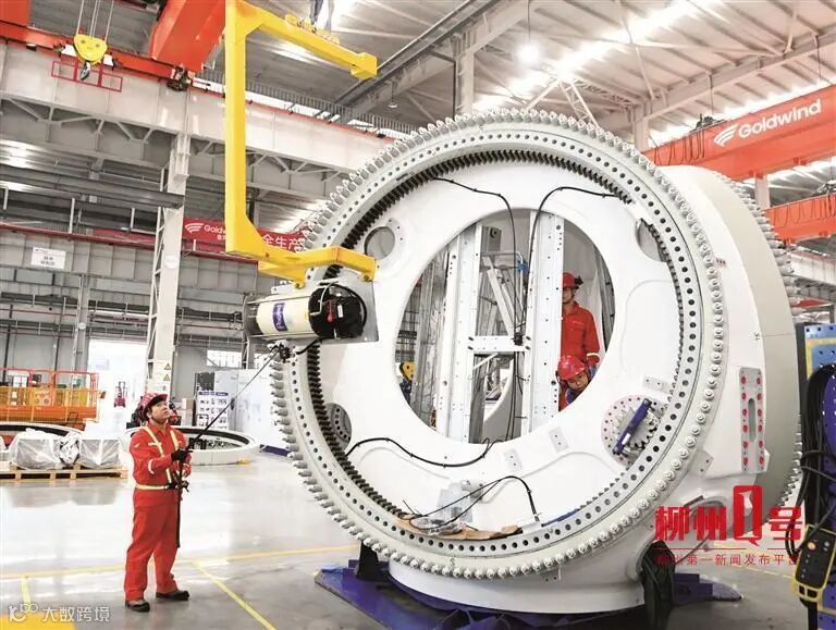 走进零碳新能源智慧装备产业园,工人正在小山包似的零部件中爬上爬下,专注地进行调试、检查。“我们生产的7.15兆瓦风电机组,叶片扫过的面积有4个足球场那么大。”柳州金风风电设备有限公司风力发电机总装厂厂长袁晓飞说,企业生产的风电机组拥有100%的自主知识产权,是名副其实的大国重器。
