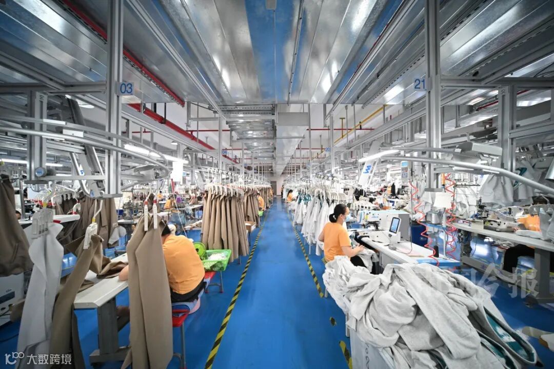 生产线上,一排排悬挂着布料的衣架中都有一枚特定的芯片。