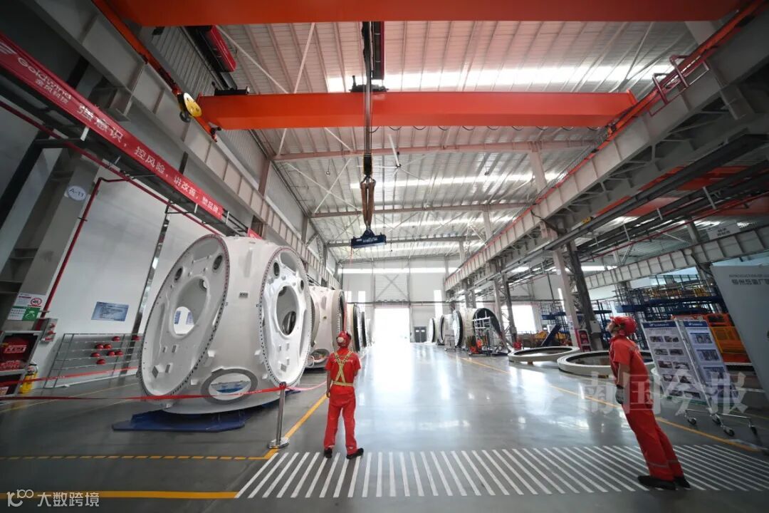 该公司生产基地于2022年7月动工,2023年2月底首台机组下线,5月15日正式投产。如今,该公司每天可生产风电设备2.5台套,接下来将迎来全年生产高峰,四季度可实现每天生产3台套。