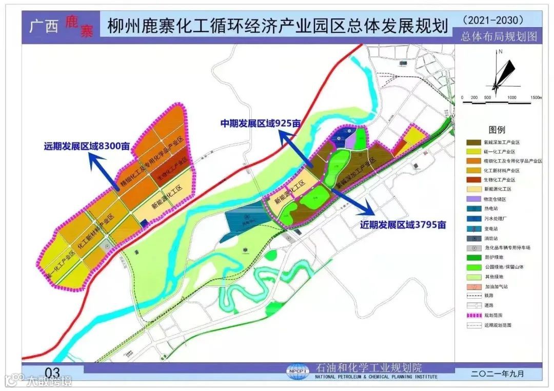 根据园区发展要求拟扩展园区后,雒清江南岸区块4720亩为新胜大道以东,雒清江以南,创园二路以西,湘桂铁路以北;雒清江北岸地块8300亩为东至思贤村基本农田,南至大村林场对亭分场,西至龙头山公墓,北至镇域边界农林用地。完成《广西鹿寨化工循环经济产业园产业发展规划》和《广西鹿寨化工循环经济产业园总体发展规划》的制定,两个规划已通过县规委会同意,并获得县人民政府批复同意实施。