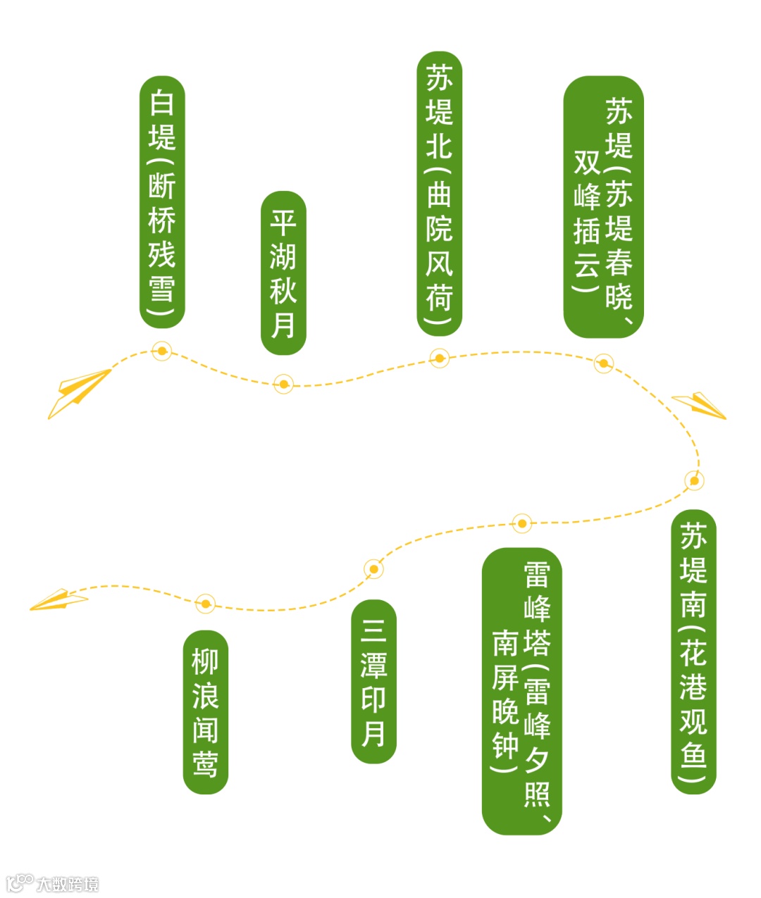 古人在分别之际,常常会选择来西湖游览,留下了许多诗词和故事,也造就了西湖边许多和送别有关的文化景观。本路线希望通过切身追随古人的足迹,将离别之情寄于山水之间,完成一次难忘的送别之旅。
