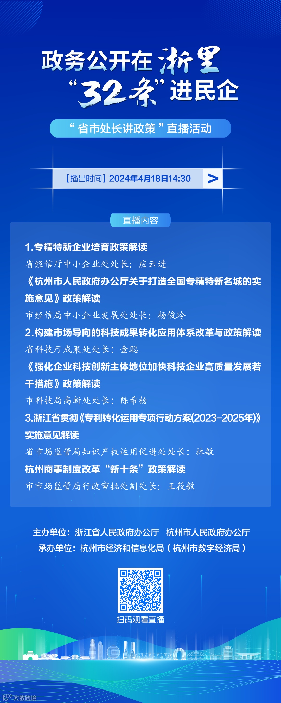 专精特新企业有何利好政策?科技成果转化应用怎么做?“政务公开在浙里 ‘32条’进民企”暨“省市处长讲政策”直播