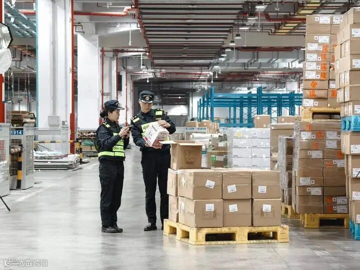 杭州萧山机场海关关员对出口货物进行监管