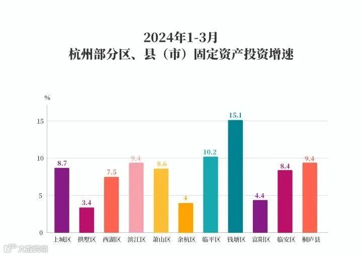 前不久,杭州13个区、县(市)发布一季度固定资产投资榜单。在增速赛道,钱塘区以15.1%的成绩强势领跑,临平区以10.2%位居第二,滨江区、桐庐县以9.4%并列第三。
