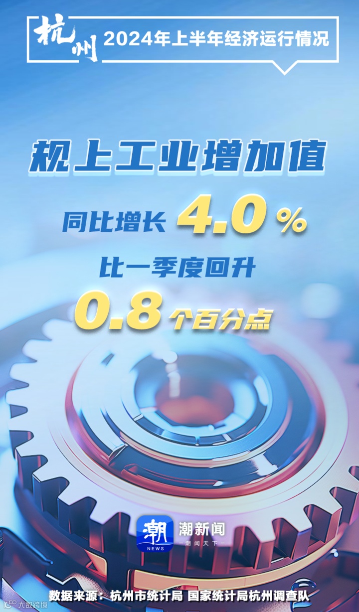 作为经济发展的“压舱石”,上半年,杭州规上工业增加值2124亿元,同比增长4.0%,比一季度回升0.8个百分点,实现平稳回升。