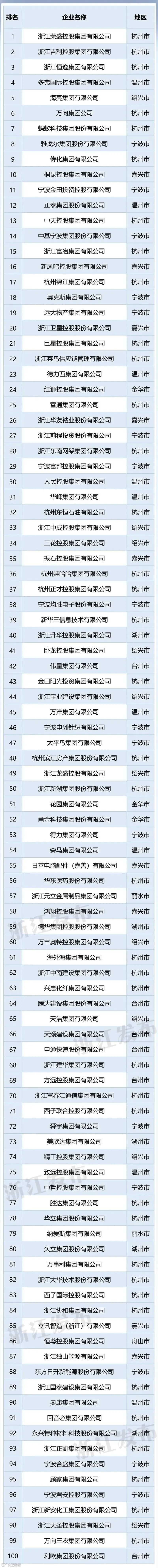 新出炉的浙江民企百强榜,根据2022年度财务报表,以企业2022年度营业收入(销售总额)为基本标准,参考其当年纳税额、净利润等指标及企业信用信息公示系统年报相关数据进行排序。