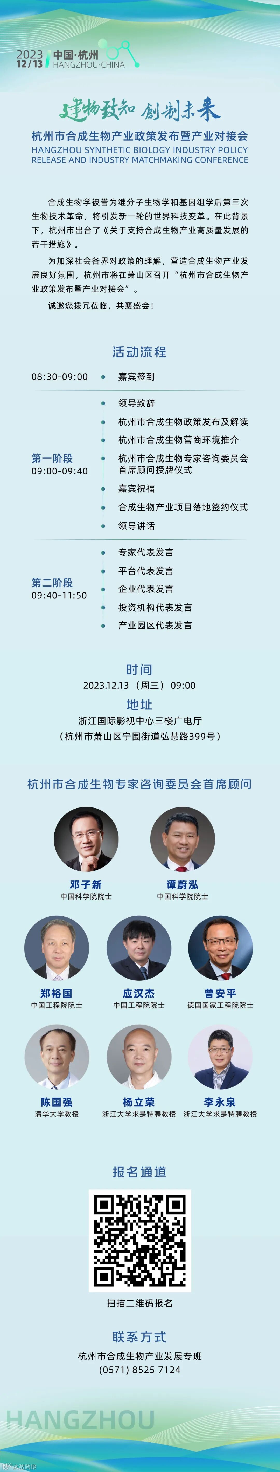 杭州市合成生物产业政策发布暨产业对接会即将开幕