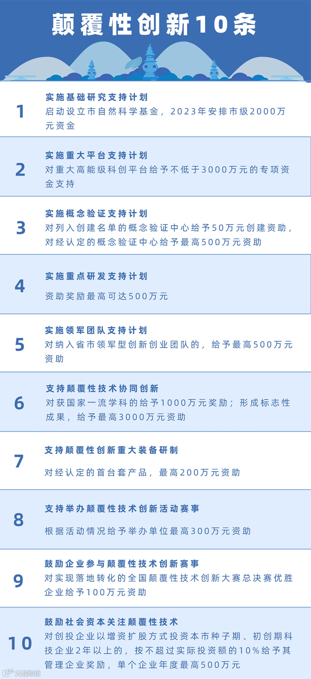 今年2月,杭州又发布了《支持颠覆性技术创新若干政策措施》,推出了“真金白银”的“颠覆性创新10条”,帮助不同阶段的概念验证中心发展。