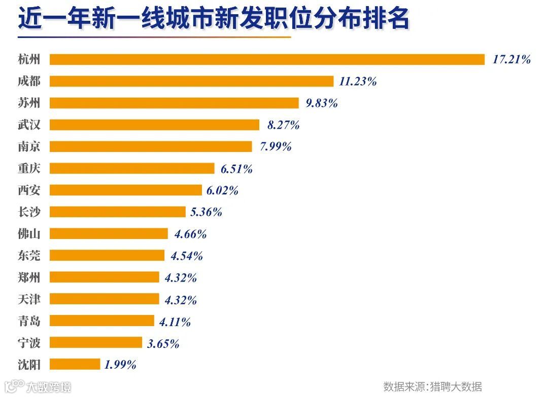 在新一线城市中,杭州在新发职位量、求职者投递人数和人才薪资方面均位居第一,优势十分突出。