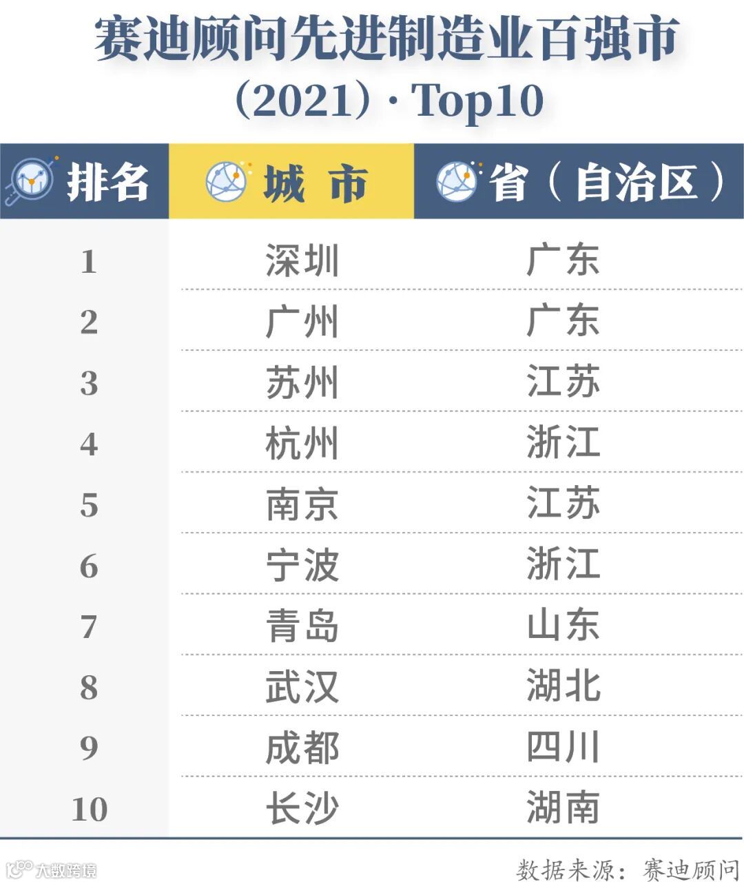近日,赛迪顾问智能装备产业研究中心发布了《赛迪顾问先进制造业百强市(2021)》榜单,从创新能力、融合发展、经济带动、品牌质量和绿色集约五个维度27项指标,对全国293个地级市的先进制造业发展情况进行了系统研究和综合评估。