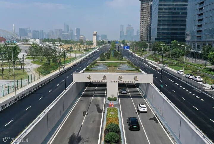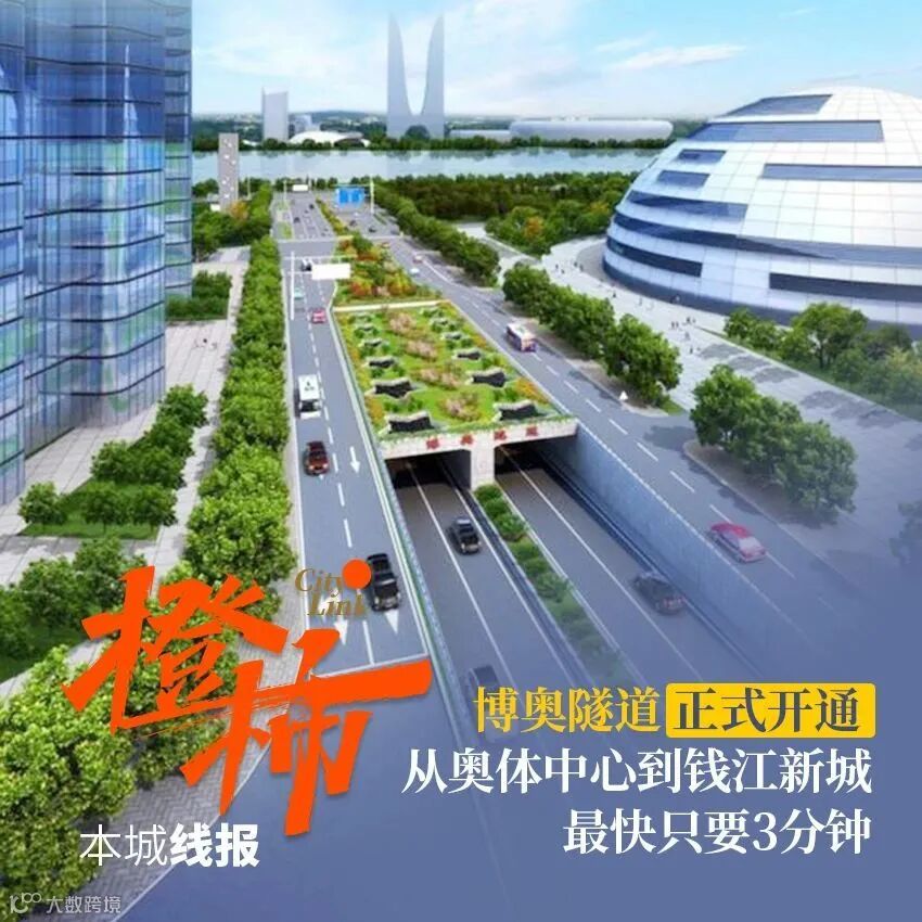 一条隧道横穿钱塘江,连通钱江新城、钱江世纪城、奥体博览城三座新城。