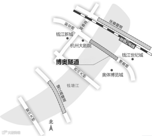 博奥隧道,位于钱江三桥和庆春路过江隧道之间,北起新业路与富春路交叉口,南至博奥路与平澜路交叉口,连接着杭州城市新中心——钱江新城、钱江世纪城,是杭州实施拥江发展行动、服务保障2022年亚运会的重点工程。