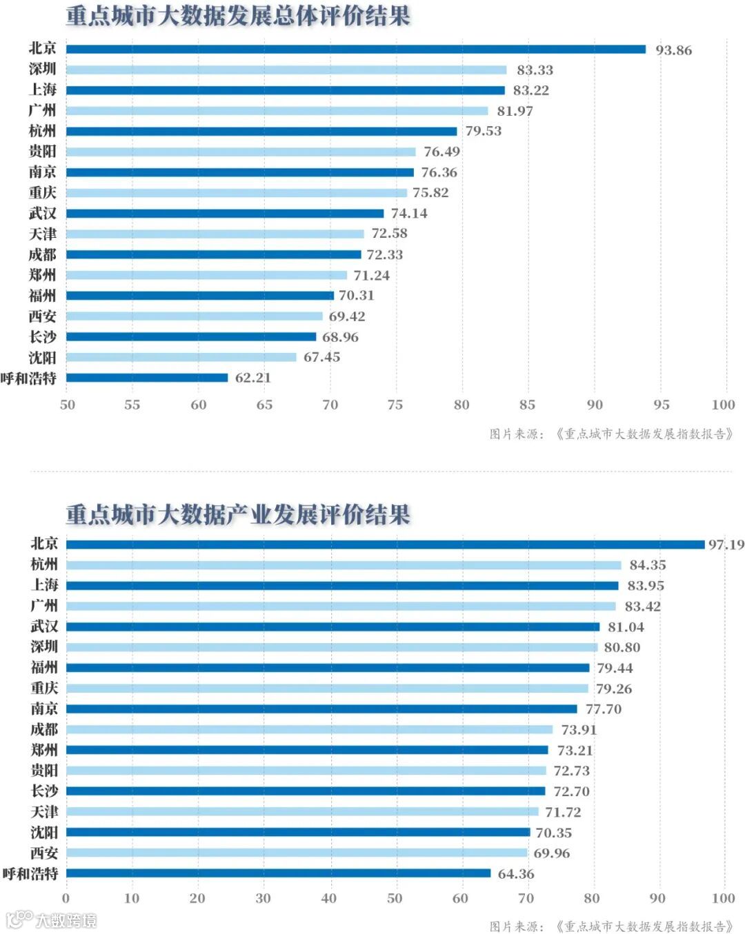 综合评比结果显示,杭州大数据发展指数为79.53,居新一线城市之首;在产业发展方面,杭州大数据产业发展水平紧跟北京,居全国第二。