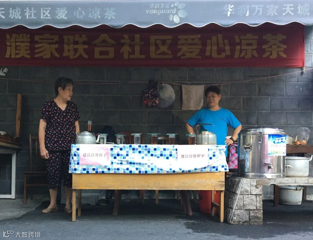 濮家新村有个凉茶摊已经连续支了十八年。最近几年里,每到夏天来这家凉茶摊喝茶的有在杭州收纸板二十多年的老师傅,也有刚来杭州五年的快递小哥,各行各业来杭打拼的人都喜欢在这里驻足歇脚。