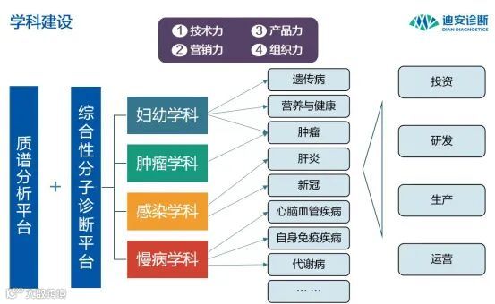 走过整整20年的创业历程,如今迪安诊断的三大业务板块包括产品业务、普检业务和特检业务,增长曲线从1.0 时代的普检(生化、免疫等)、2.0时代的特检(四大学科、两大技术平台),向3.0时代 的To C端疾病管理和健康管理迈进。