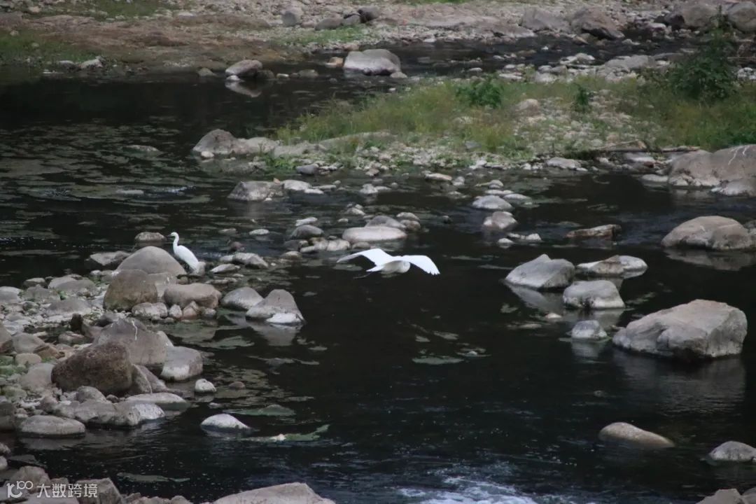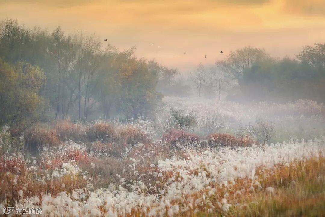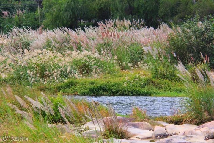 秋季芦花盛开,从河堤上望去,白茫茫一片,远近交错,层层叠叠,绵延至远处的窑山下。风吹过,四散的芦花絮如片片雪花在空中纷飞,簇拥生长的芦花摇曳出了一个柔软的仙境。