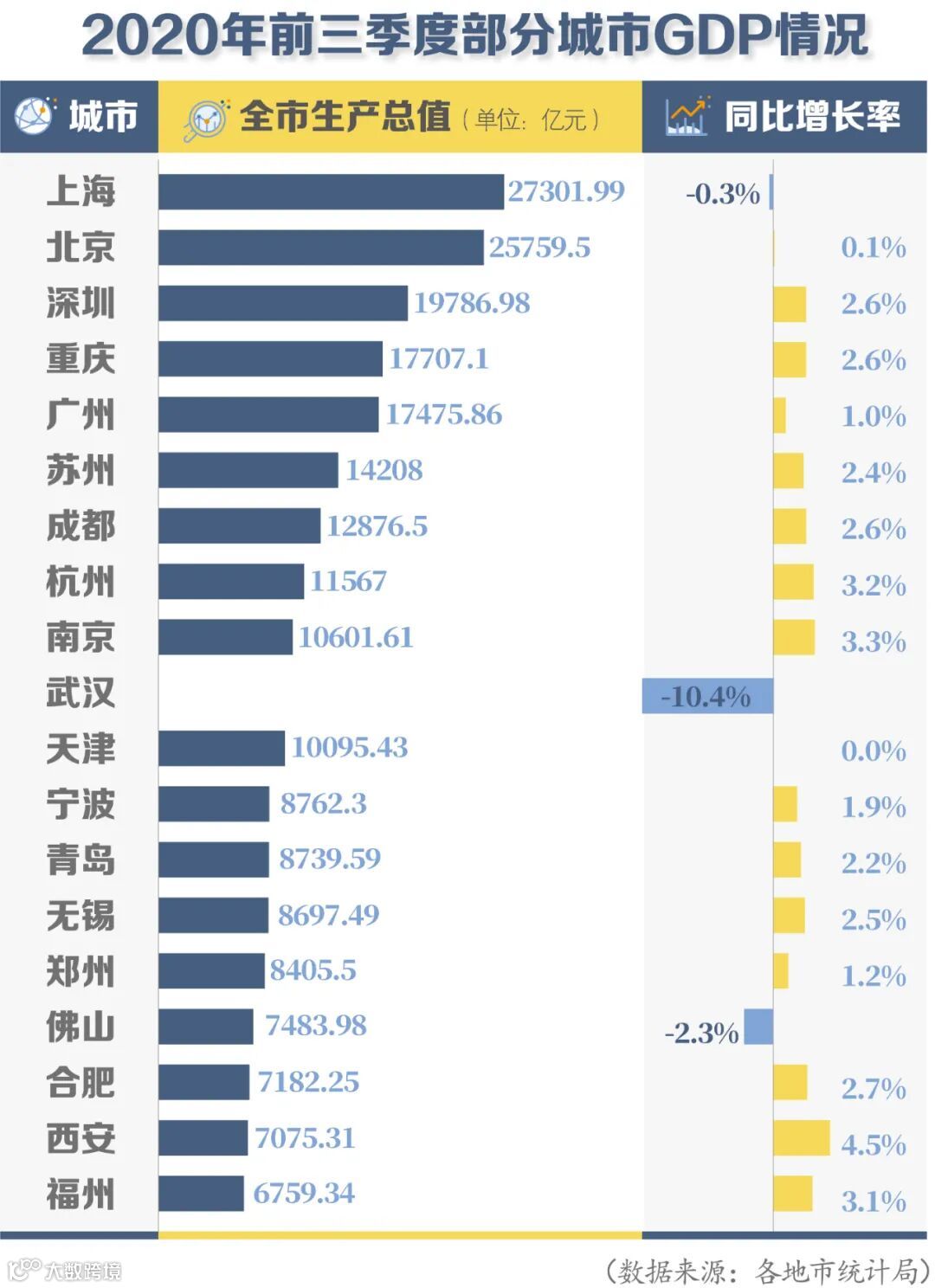 从全国数据来看,2020年前三季度各省市GDP的增速中,上海GDP增速为-0.3%、北京0.1%、深圳2.6%、武汉-10.4%,杭州是3.2%。在全国主要大中城市里,杭州经济反弹的趋势更加突出,背后折射出杭州经济结构具有较强韧性的特征。