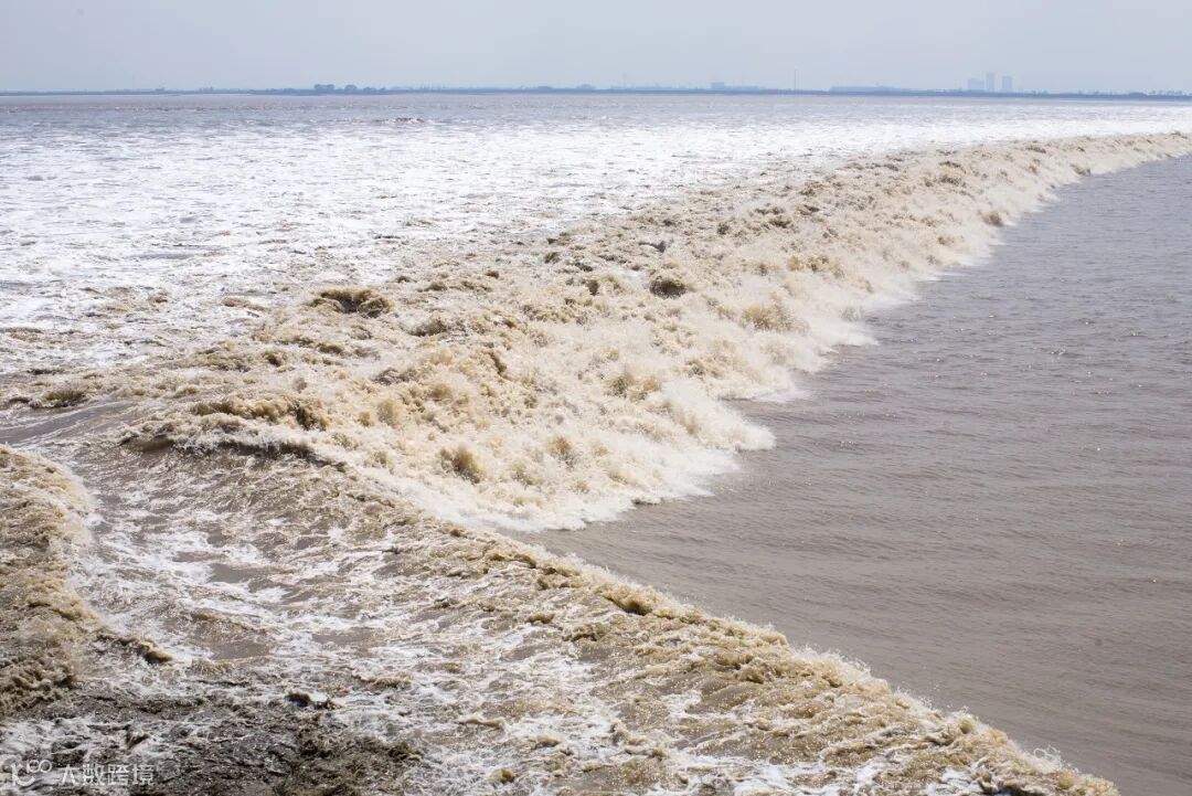 潮头临近,白练筑成数米高的水墙,呼啸而过。