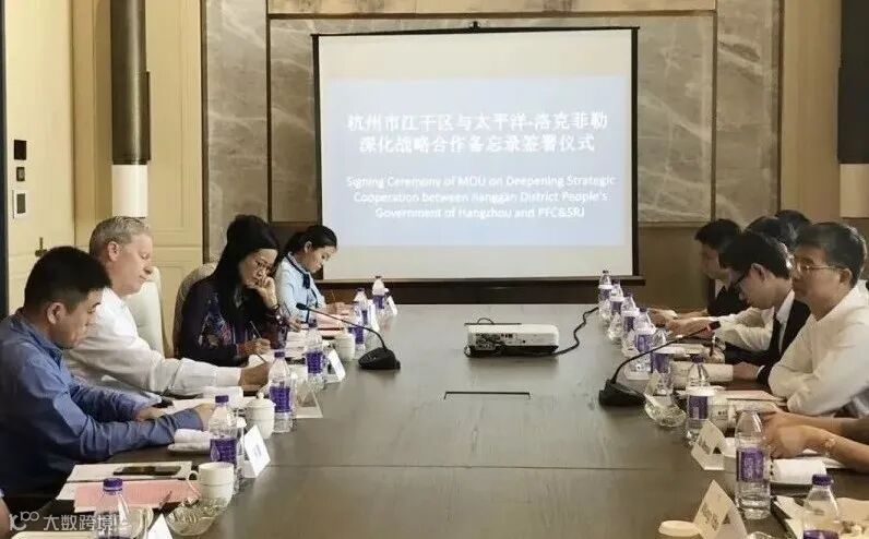 ▲杭州市江干区与太平洋-洛克菲勒深化战略合作备忘录签署仪式现场