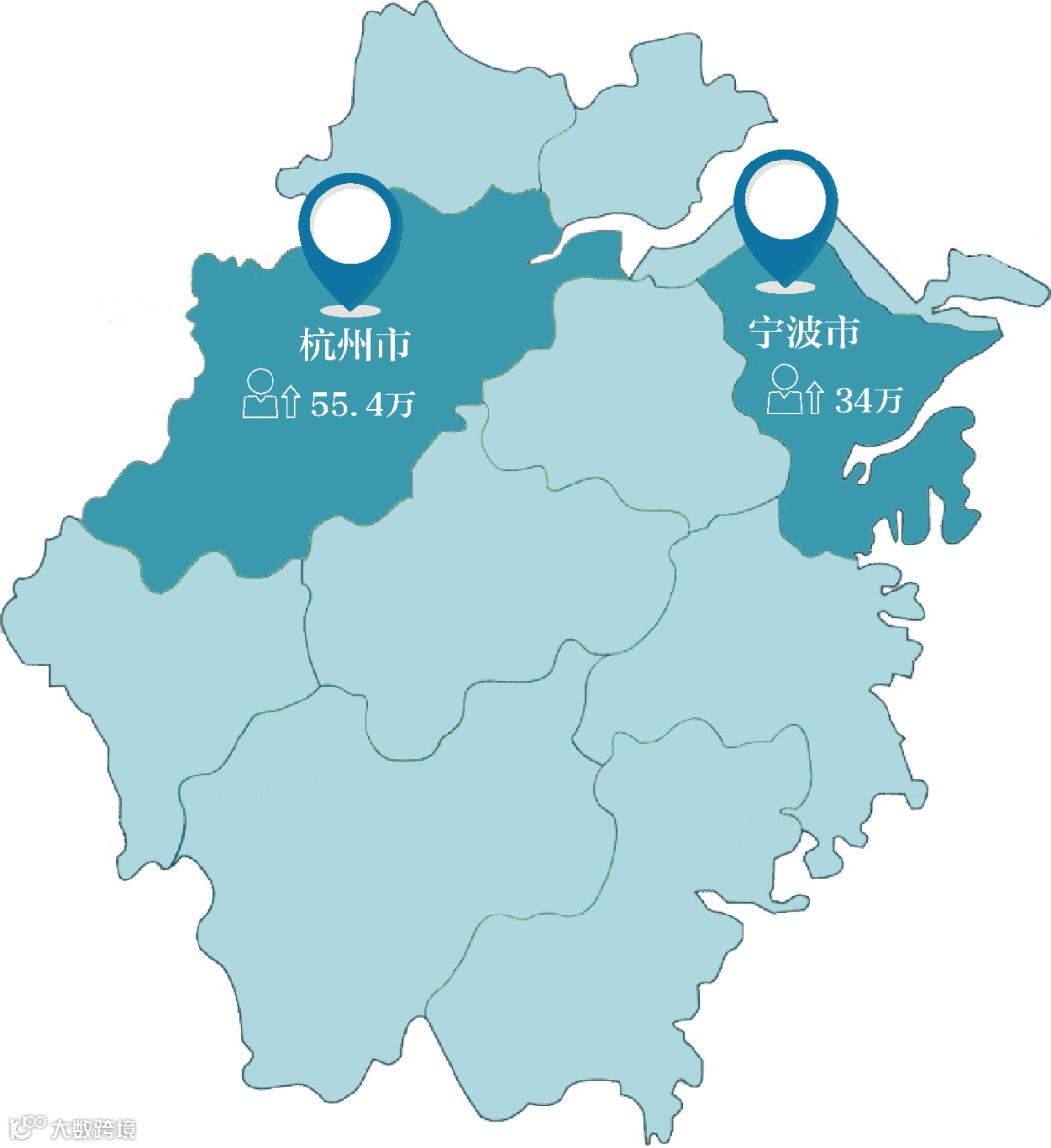 2019年,浙江常住人口增加113万人,其中杭州和宁波分别新增55.4万、34万,两市合计占浙江新增八成比重。