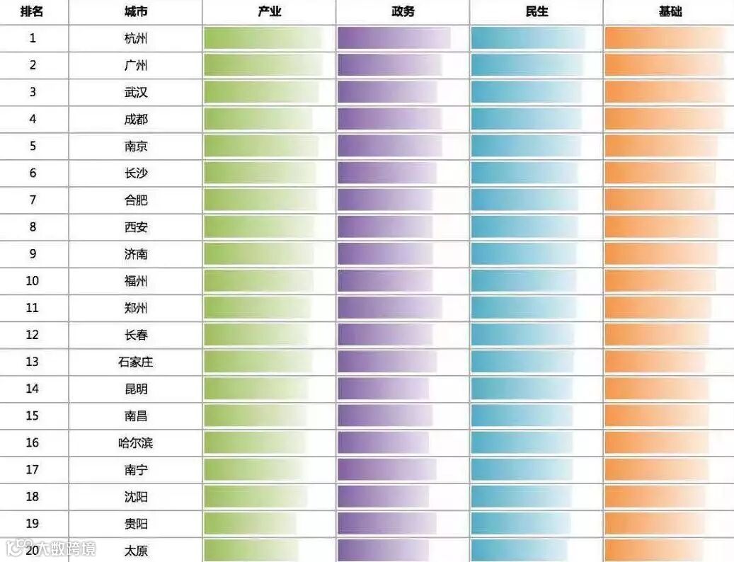 7月19日,赛迪顾问发布《城市数字竞争力研究白皮书》和数字竞争力百强城市。通过赛迪数字经济评价指标,优选出我国数字经济的百强城市,并对这些城市从产业发展、政府治理、民生保障和数据基础四个方面进行数字竞争力评价。杭州在省会城市数字竞争力排行中排名第一。