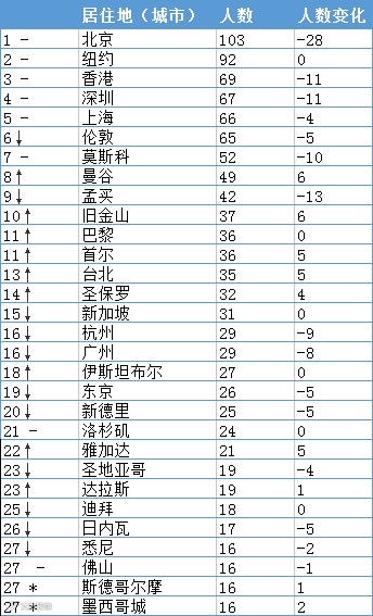 △ 来源:《2019胡润全球富豪榜》城市居住地排名