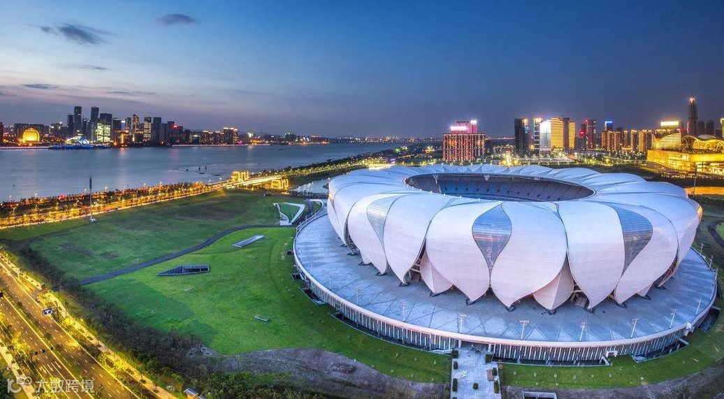 钱塘江畔,一朵绽放的白色莲花与杭州老城区隔江相望,这朵“莲花”正是2022年杭州亚运会的主体育场——杭州奥体中心。它的不远处坐落着G20峰会主会场杭州国际博览中心,两座醒目的建筑已经成为杭州市新地标。