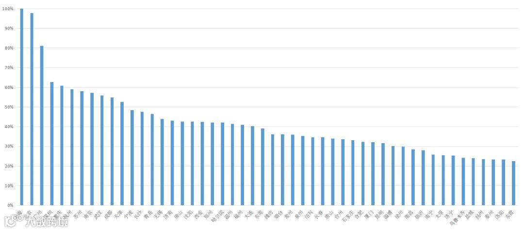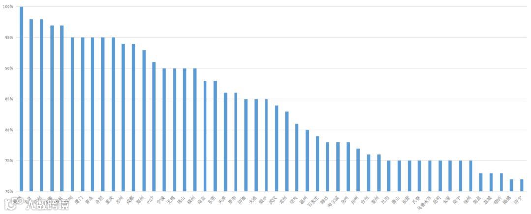 指的是新零售的前提比例方面。蚂蚁金服2017年账单显示,2017年全国5.2亿支付宝用户的移动支付占比为82%;贵州、山西以92%并列第一,均创新高。移动支付占比超过90%的省份达11个,而前一年仅有1个。可以预见,未来随着移动支付的全面普及,这一指标将成为城市竞争力的基本指标。
