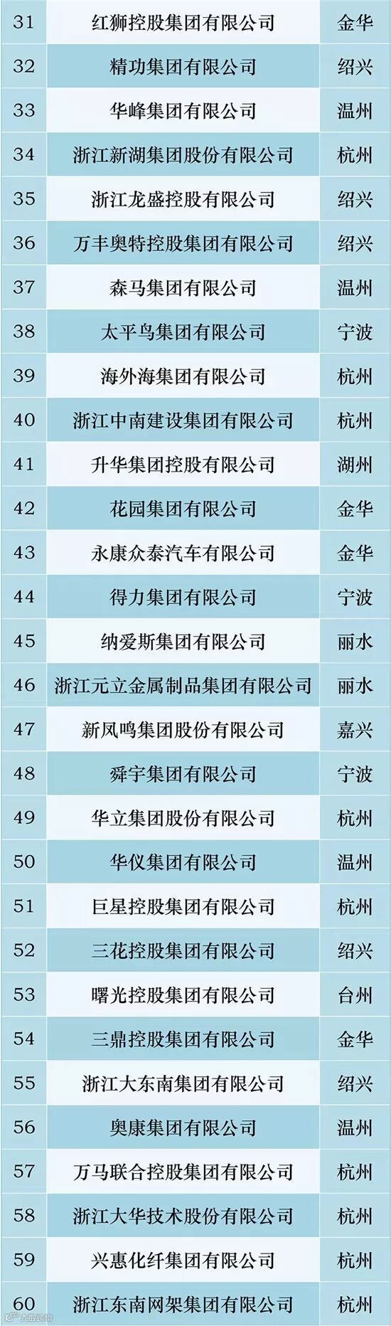 2017年度浙江省民营企业百强榜单