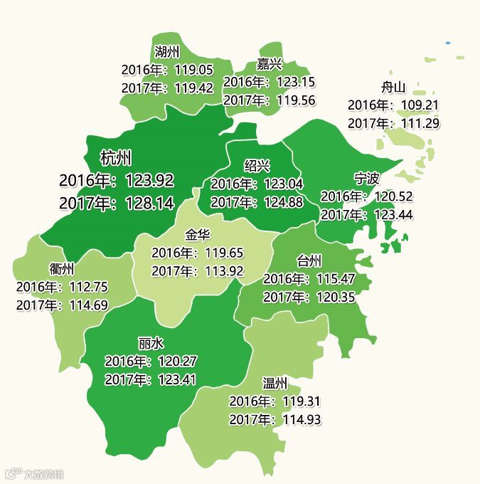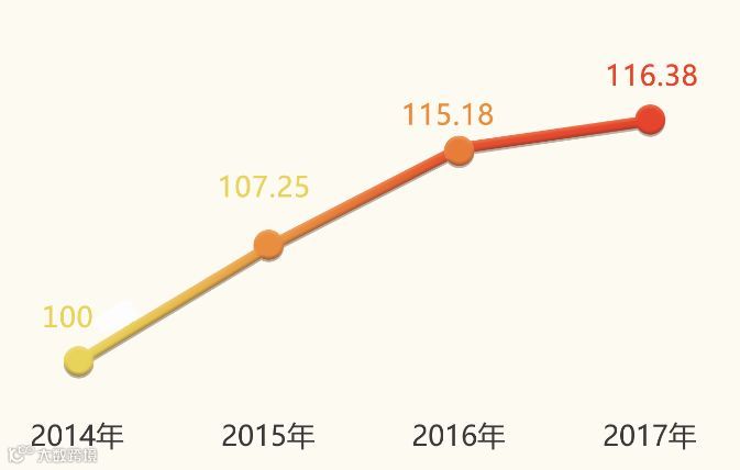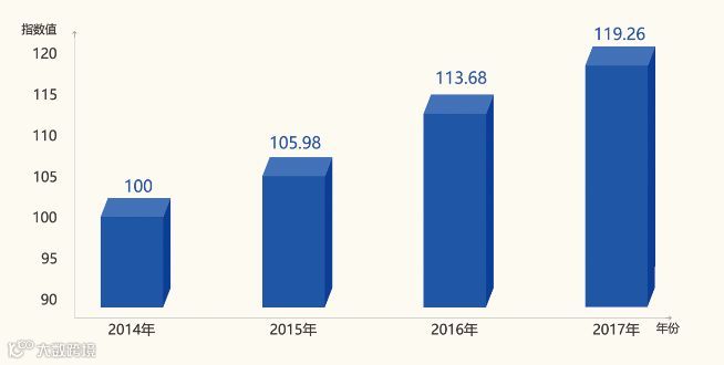 活力指数较2015年上涨13.28点,达119.26点,同比增长4.91%。