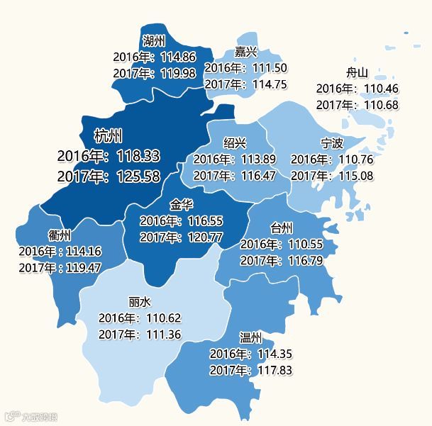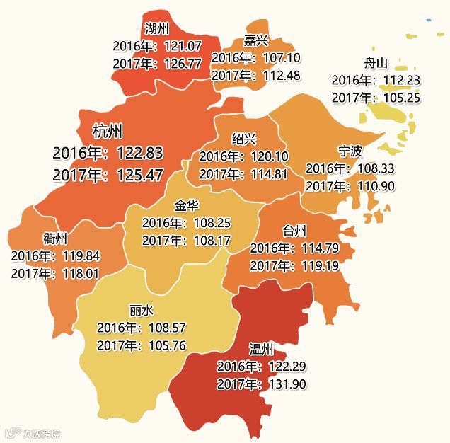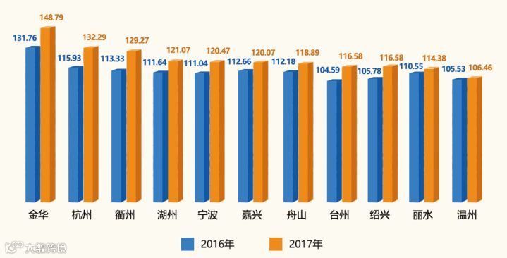 创业活跃度指数金华、杭州、衢州市位居前三。