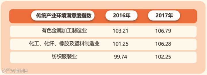 环境满意度指数继续攀升,政府机构办事效率增幅较大。
